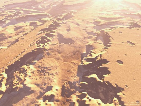 No centro da imagem observam-se “dunas” em Mellas Chasma (Valles Marineris). Créditos: Space4Case.